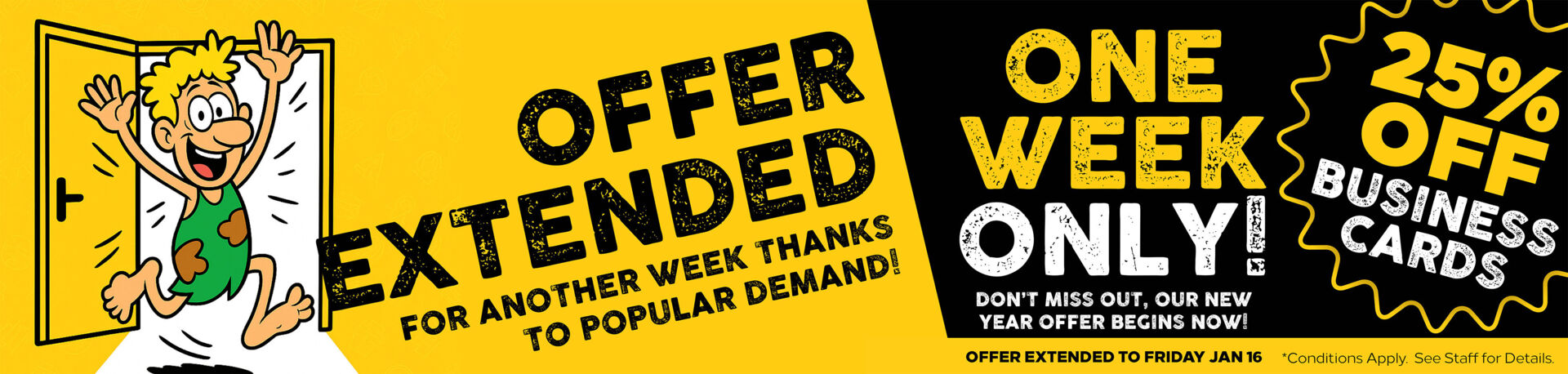 To kickstart the new year, we are offering 25% off business cards! Freshen your cards and start the year off with a whole new look. But hurry, this week only! Get your orders in!